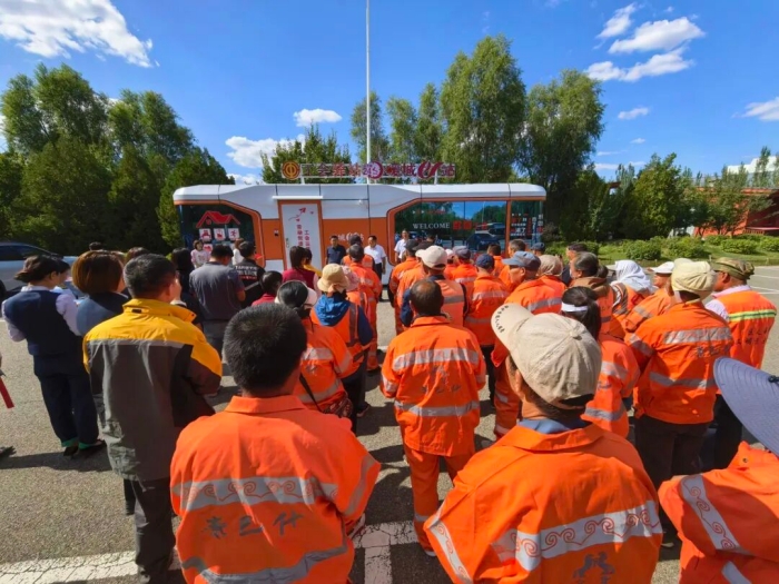 驿站启用仪式现场,康巴什区总工会联合多家单位开展公益活动:内蒙古农商银行康巴什区支行捐赠4000元饮用水,中国邮政集团有限公司鄂尔多斯市康巴什区分公司捐赠3000元图书,充实驿站物资储备;专业理发师为环卫工人、新就业形态劳动者提供义剪服务,医护人员现场义诊并普及健康知识,反诈宣传志愿者发放资料、讲解案例,全方位守护劳动者权益与健康。
