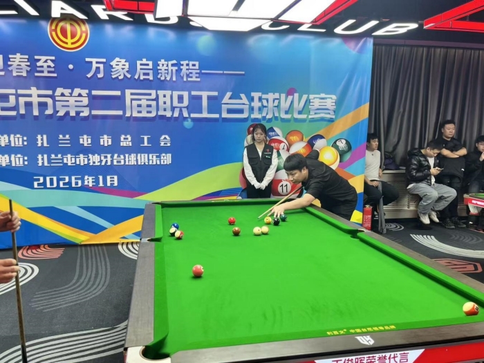 中工网讯 1月9日至13日,由内蒙古自治区扎兰屯市总工会主办的“骐骥迎新春 万象启新程”扎兰屯市第二届职工台球比赛举行。来自全市机关、企事业单位的58支代表队、320余名职工参赛。